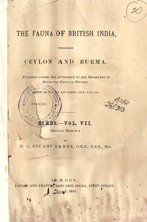 The Fauna of British India, Including Ceylon and Burma: Birds – Vol. VII (Second Edition)